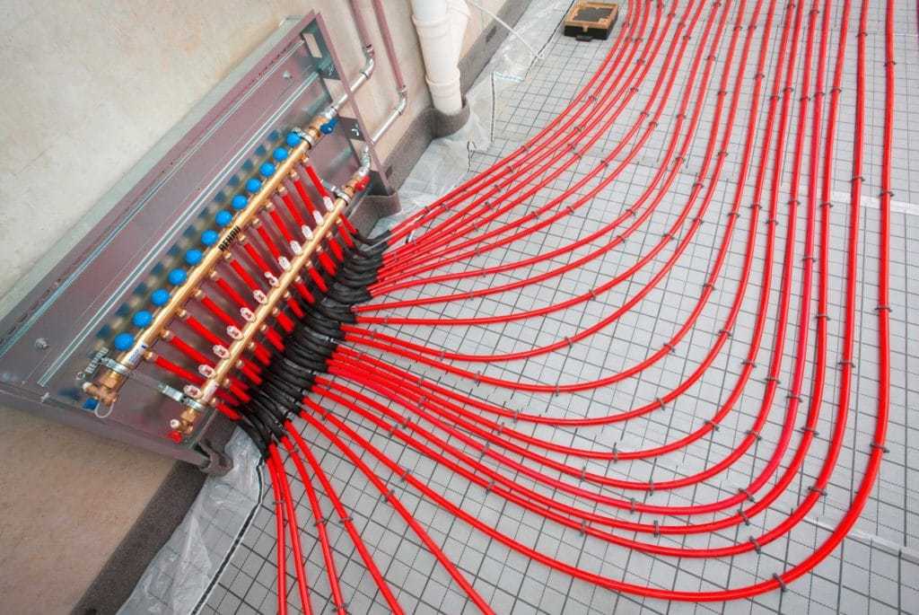 После завершения монтажа система тестируется на герметичность и работоспособность. Затем устанавливается сетка и заливается бетон. После высыхания основания монтируется декоративное покрытие.