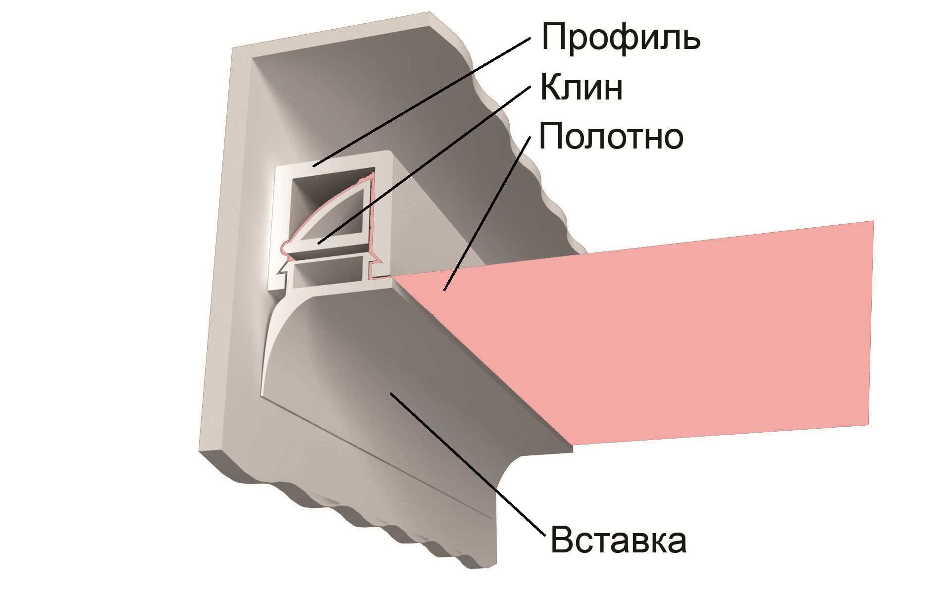 Процесс установки натяжного потолка – это основной этап работ. Это может быть традиционная, клиновая установка полотна. При установке полотна следует выполнить пошаговую инструкцию.