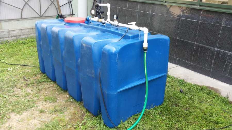 Когда отсутствует необходимость в постоянном наличии воды, либо она нужна время от времени, используют довольно простое, достаточно дешевое благоустройство — устанавливают большие баки (обычно – межчердачное перекрытие загородного дома), в которые вода поступает с помощью насоса, заливается вручную.