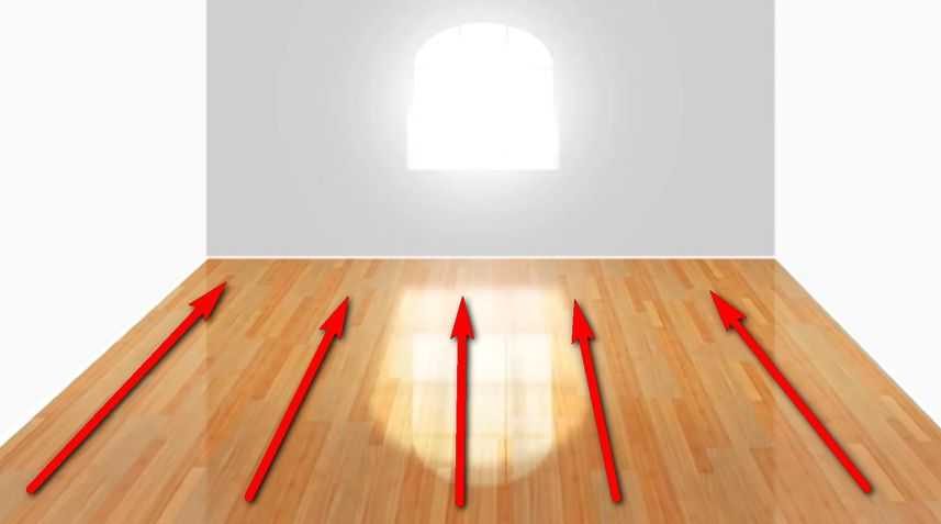 Важно: чтобы добиться такого эффекта, окна должны быть расположены только с одной из сторон комнаты. Если провести монтаж пола поперек линий падающего света, то пропорции помещения будут искажены (комната «вытянется»)