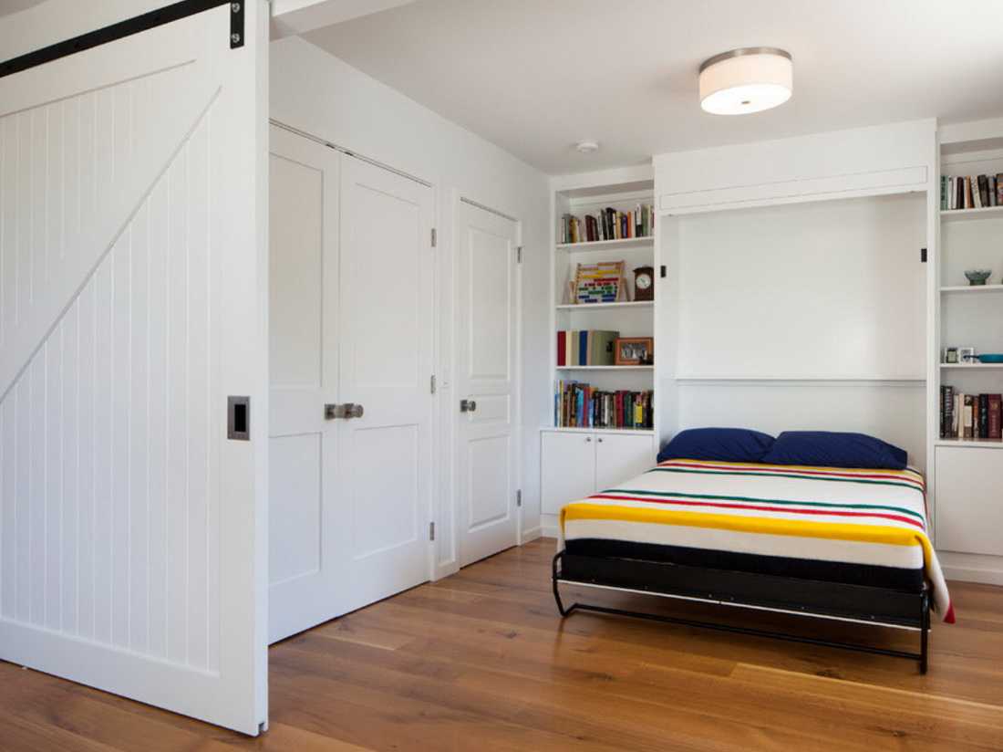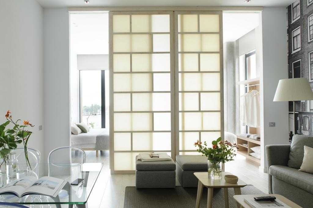Если планируется выбирать белые двери в квартире-студии, стоит обратить внимание на раздвижную конструкцию. Она может стать ярким акцентом во всей концепции, а также осуществить зонирование помещения