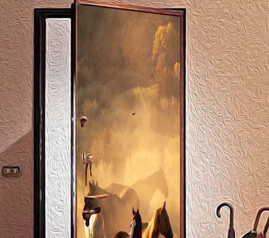 Этот стиль очень актуален последнее время. Такой вид украшения для вашей двери – это не только прекрасный способ замаскировать мелкие повреждения, но и быть в тренде современного декора в интерьере.