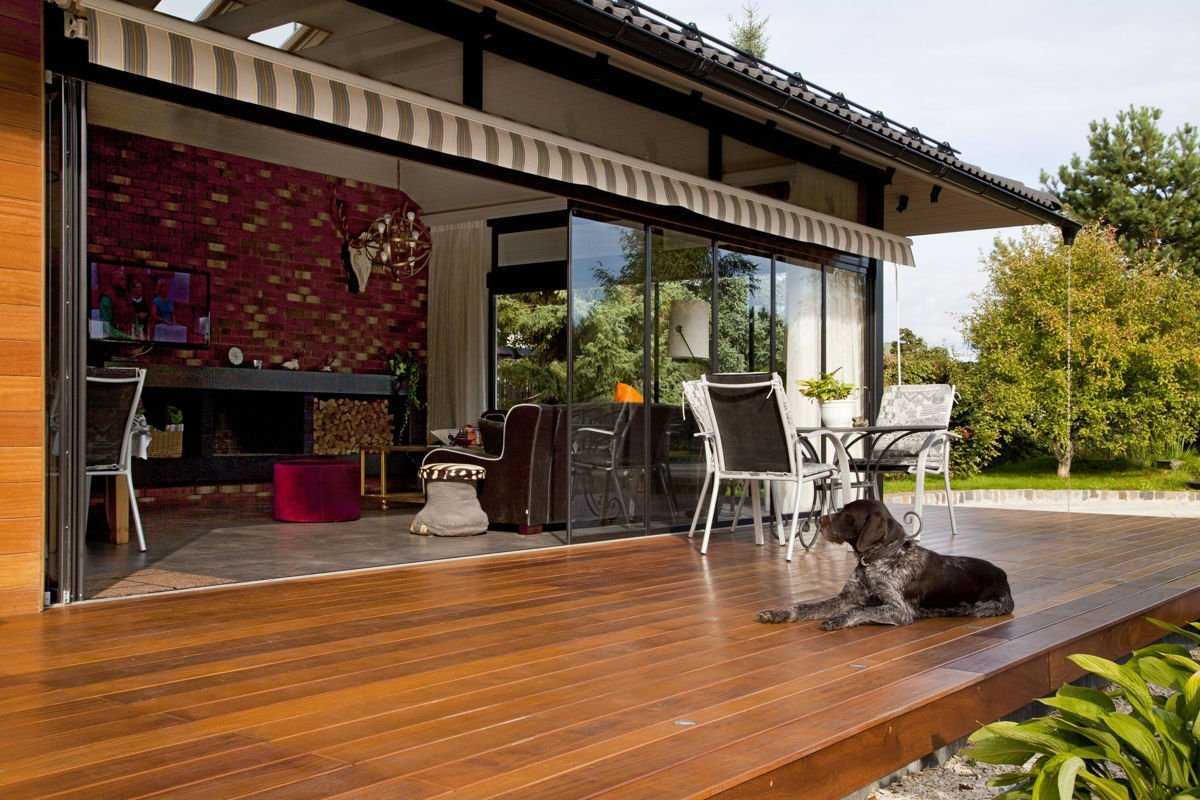 На веранде проводят большую часть времени все члены семьи, поэтому стоит уделить особое внимание подбору напольного покрытия