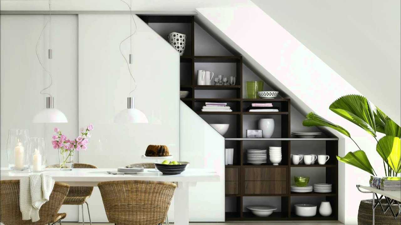 Оригинальный ход — применение мебели с глянцевым или зеркальным фасадом, а также изделий на основе пластика и прозрачных стекол. Подобные предметы визуально занимают очень мало места и остаются почти невидимыми. Участки под лестницами позволяют создать системы хранения или же рабочие уголки. Пространство под кроватью, если занять его крупными выдвигающимися ящиками, способно вместить больше вещей, чем может показаться!