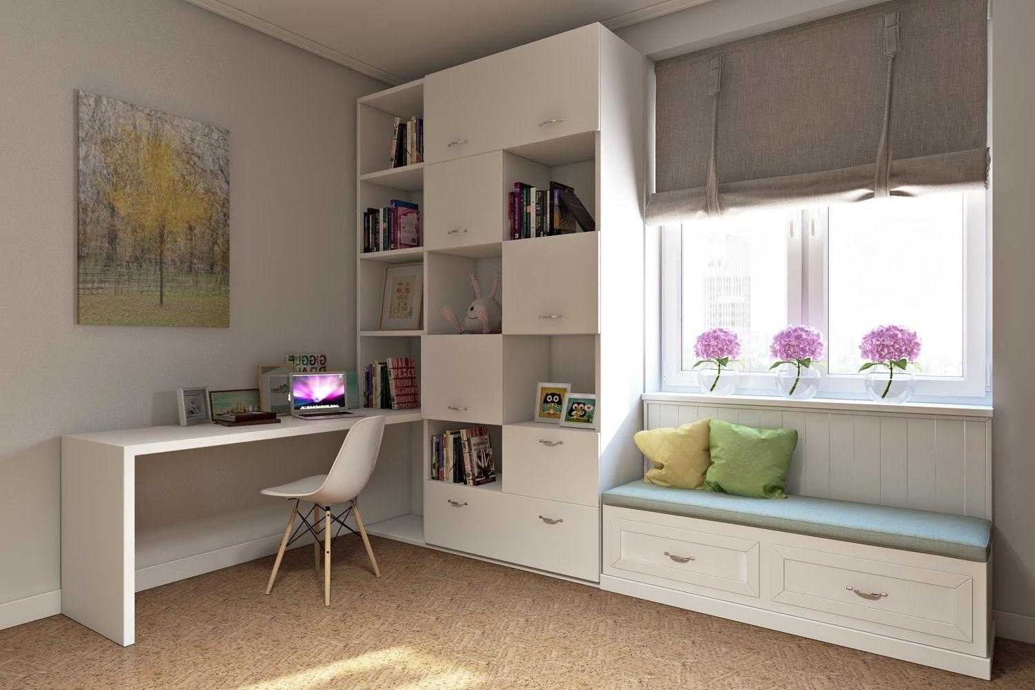 организация рабочей зоны в спальне у окна