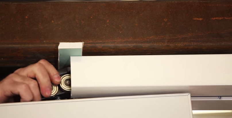 Ролики с каретками прикрепляются к полотнам, для этого в фурнитуре есть специальные захваты. При монтаже роликов на направляющий трек, следует убедиться в том, что поворотный механизм фурнитуры расположен правильно и полотно будет вращаться вокруг своей оси в нужную сторону.