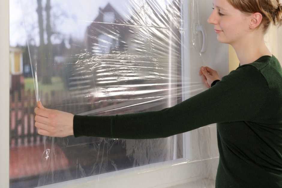 Почему этот способ работает? Потому что создается дополнительная изолирующая прослойка воздуха — между пленкой и наружным стеклом. Это первый момент. Второй вот в чем. Так как пленку обычно прибивают к стенам, получается, что холодный воздух не проникает и к раме.