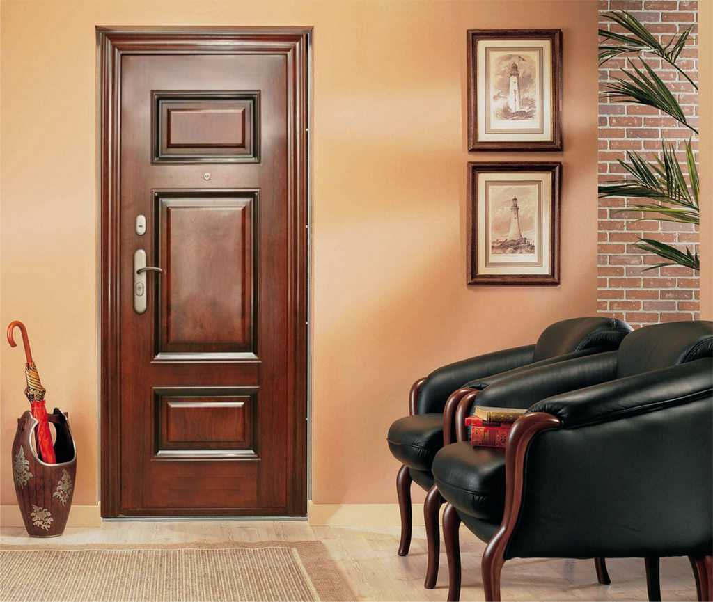 Конструкция двери располагается между двумя стальными листами, причем толщина каждого — минимум 2 мм. Есть также новейшие модели с наружным листом толщиной 3 мм.