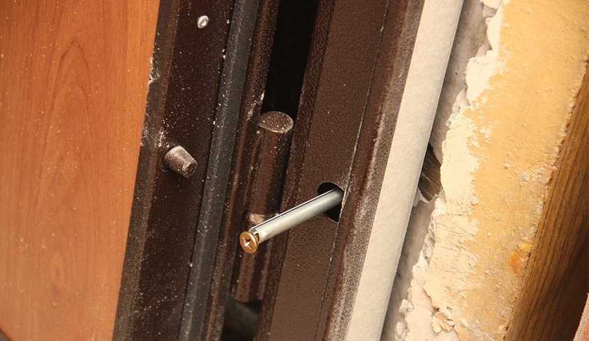 9. Противосъемные штыри. Устанавливаются только при наружных петлях. Удерживают дверную створку в коробке при попытке срезать петли и снять дверь.