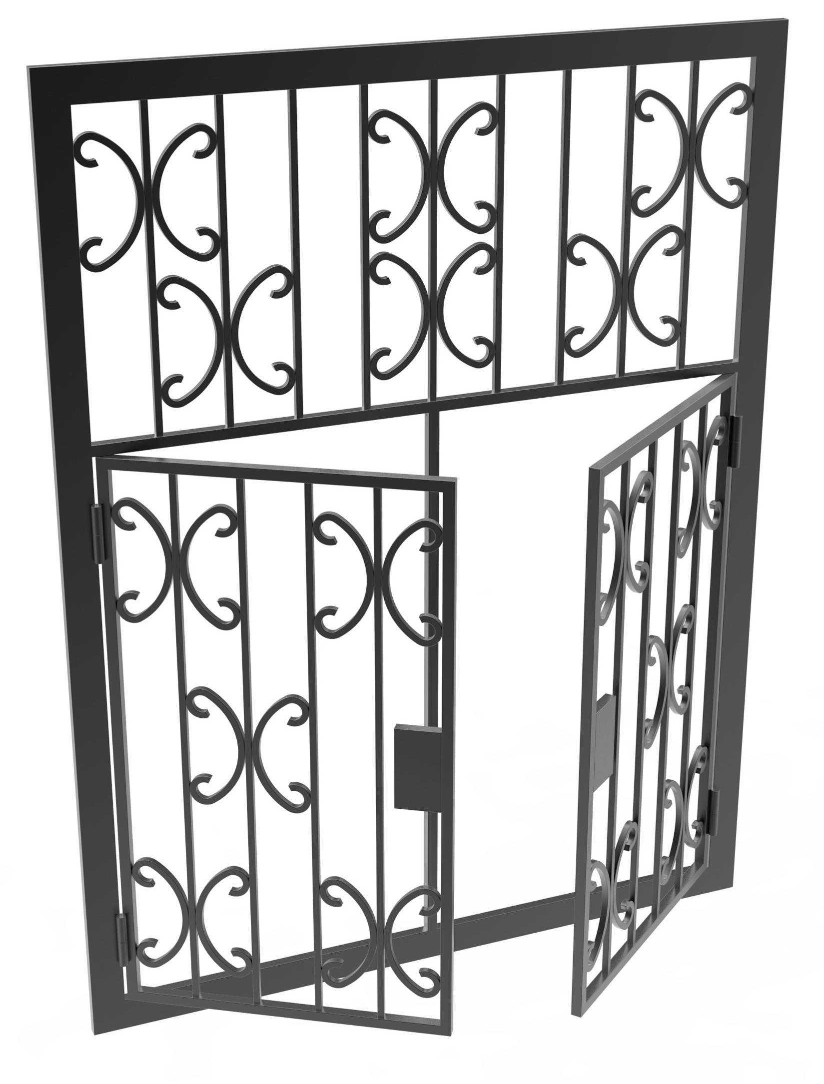Распашные решетки при необходимости могут распахиваться, оставляя оконный проем полностью свободным. Это удобно не только с точки зрения пожарной безопасности, но и при желании не загромождать вид из окна стальными прутьями. Распахиваться может одна или обе створки, а защищают окно от проникновения посторонних навесной или врезной замок.