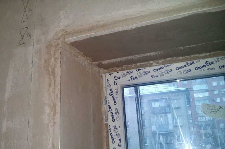 Раствор для откосов готовим в соответствии с инструкцией, размещённой на упаковке. Его необходимо тщательно вымешать, добиться однородности во всех слоях. После выставления всех ориентиров приступают к обработке поверхностей откоса грунтовкой (или смесью с ПВА).