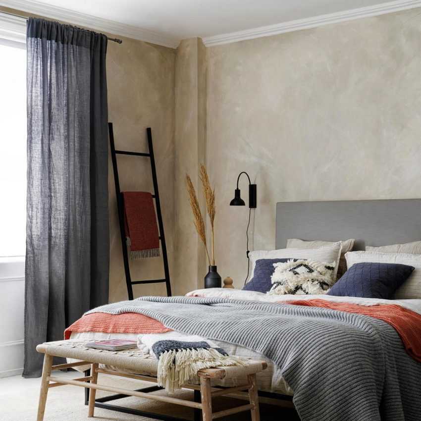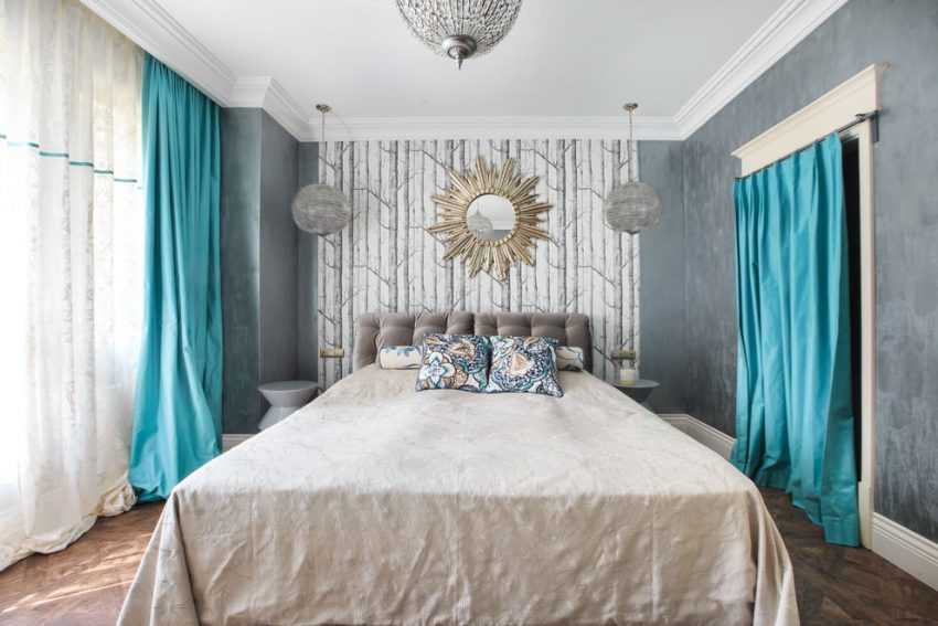 Например, в вопросе, какие шторы нужны в спальню с серыми обоями, важно предусмотреть, чтобы ткань была более яркого цвета, совпадающего по тону с покрывалом на кровати и другим текстилем.