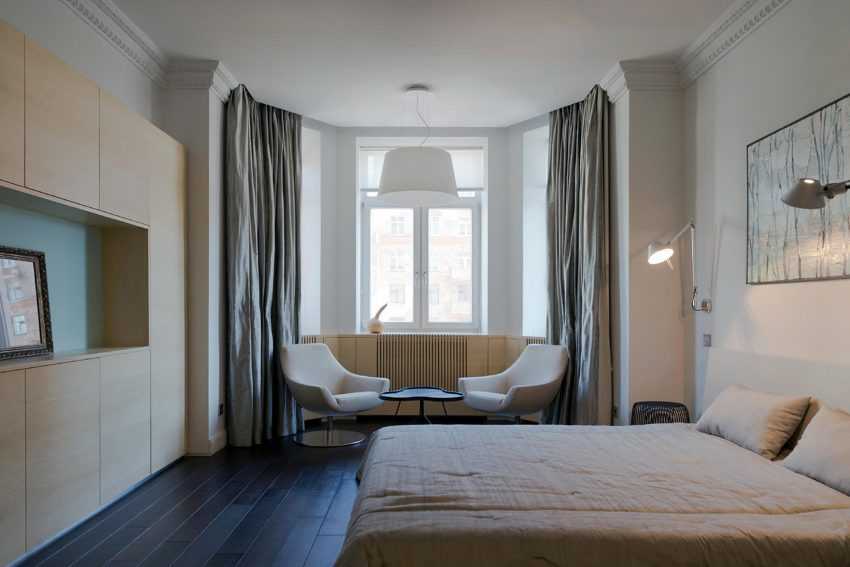 Лучше всего подобный дизайн смотрится, если место у окна чем-то занято. Например, мебелью или батареей — открытой либо замаскированной сделанными на заказ тумбами. В противном случае общий вид может казаться незаконченным.