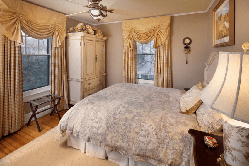 Количество поступающего из окна света. Если спальня выходит на солнечную сторону, нужны более плотные занавески, защищающие утренний сон.