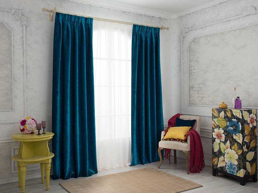- Плотные и тяжелые шторы будут хорошо смотреться в сочетании с лёгким полупрозрачным тюлем.