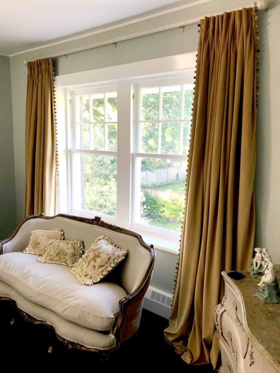 Лучше забыть про усеченные портьеры, если в комнате узкие проемы и низкий потолок. Кроме того, учтите, что перевесить их в другое место вряд ли получится, поскольку шьются они под конкретные размеры.