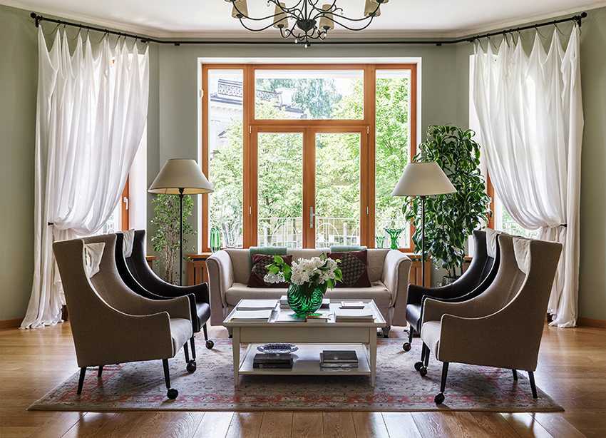 Правила хорошего тона: варианты оформления окон длинными шторами