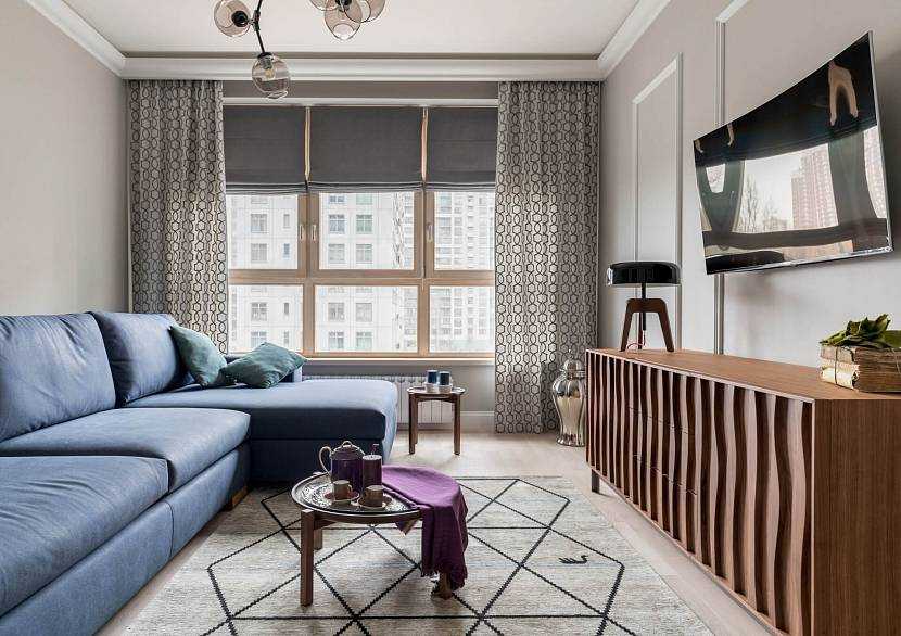 Экологическая чистота жилья, использование натуральных материалов — тренд современного дизайна. В основном для штор в гостиную используют рогожку, мешковину с выраженной текстурой, лён, ситец с добавлением искусственной нити. В стилистике минимализма органично смотрятся раздвижные японские шторы, бамбуковые ролеты.