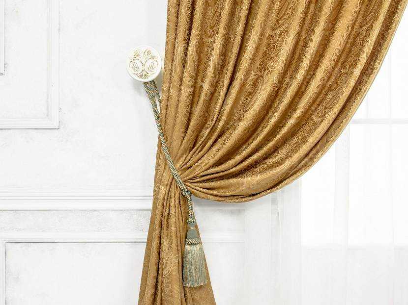 Портьеры в сочетании с пышными «австрийками» с многочисленными фестонами не рекомендуется собирать в вычурные драпировки. Самый оптимальный вариант ― фиксировать их в дневное время боковыми подхватами или шторными заколками.