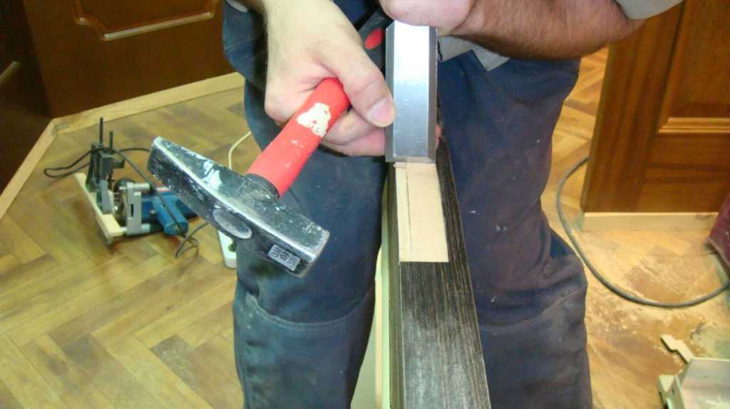 Когда вся раздвижная конструкция готова, можно приступать к монтажу фурнитуры. Специалисты рекомендуют прикрепить всю необходимую фурнитуру еще до установки самого полотна. На полотне размечается место для ручки и вырезается под необходимые параметры паз. Здесь в помощь придет стамеска, а частично поможет метод высверливания.