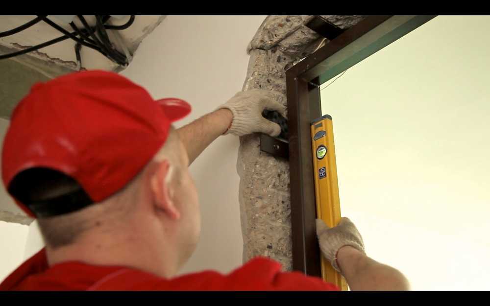 - Ее устанавливают в проем, поставив на 1,5-сантиметровые подкладки. С помощью ответа добиваются вертикального положения.