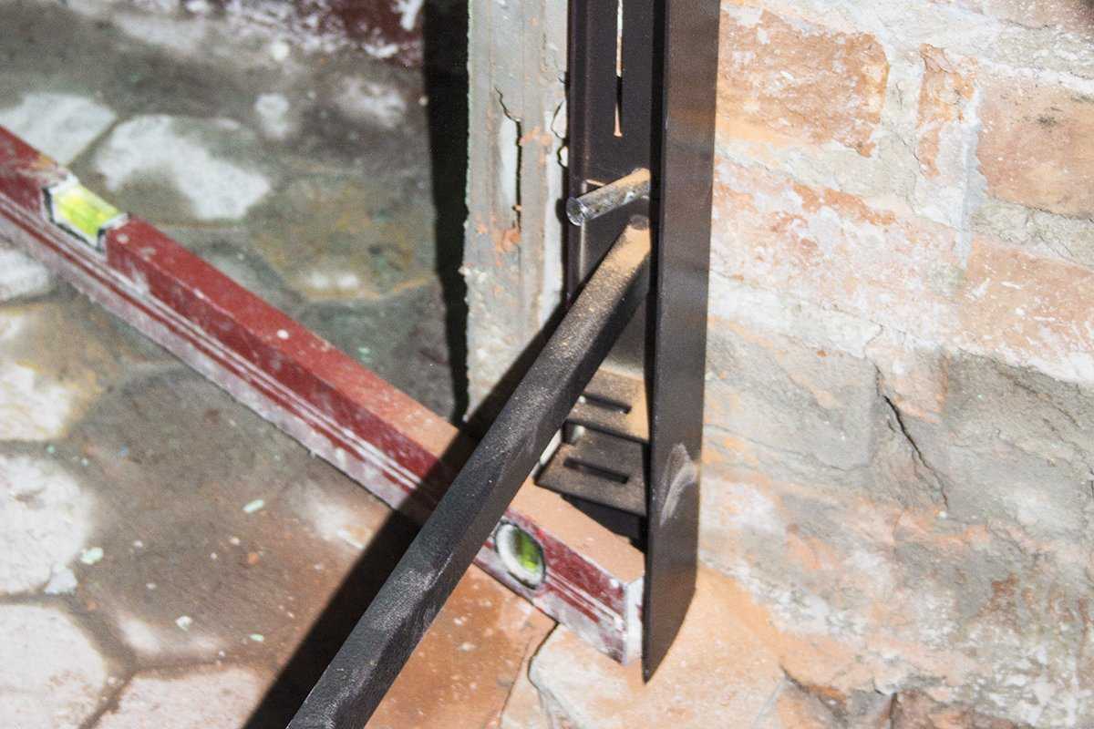 Затем сваривают ее с дверным каркасом. К блоку приваривают пластины, которые со стороны помещения должны доставать до решетки. После выравнивания его распирают клиньями, а затем окончательно крепят, периодически проверяя, чтобы вертикальная ось оставалась перпендикулярной горизонту.