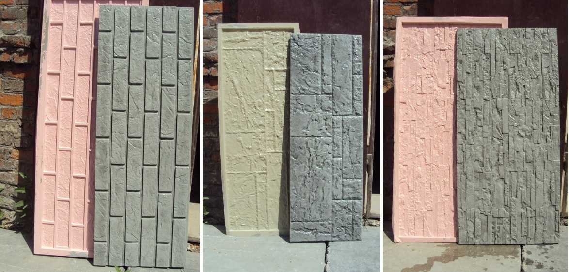 Последним этапом процесса изготовления является окрашивание. Для этого используются различные виды краски: текстурная или обычная гладкая. С помощью текстурной краски изготавливают панели, имитирующие дикий или искусственный камень. Чтобы защитить готовое изделие от воздействия вредных солнечных лучей и различных осадков, их покрывают специальным защитным составом. А для большего сходства с каменными плитами обсыпают крошкой.