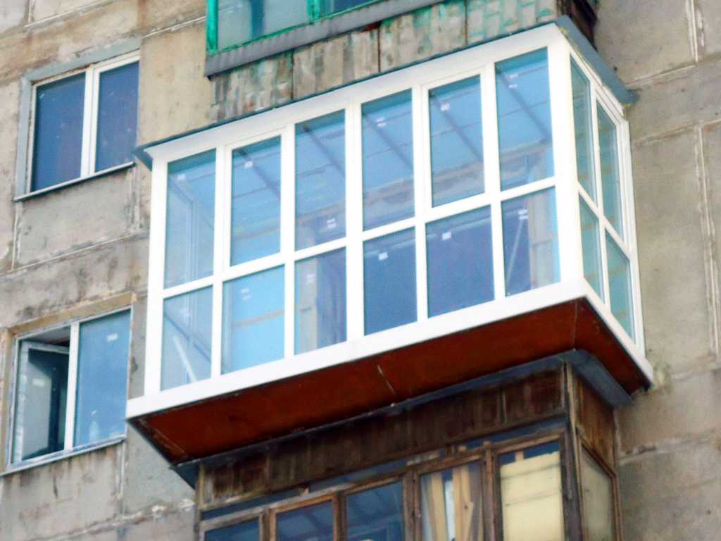 - Монтаж балкона с выносом. Для остекления таким способом необходим особо прочный парапет, причина в распределении давления по вертикальной и горизонтальной плоскости.