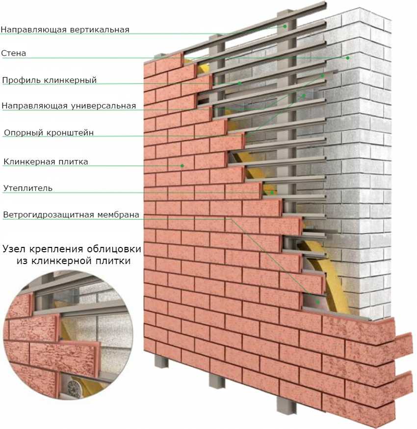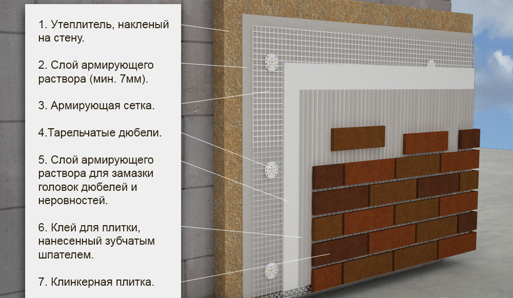 Несмотря на традиционность рубленных коттеджей – в России самый дешевый лес, пиломатериалы из него, кирпичный дом по-прежнему является символом достатка. Поэтому, в качестве несущего каркаса выбирается конструкция из достаточно прочного бюджетного материала (рядовый кирпич, бетонные блоки), клинкерная плитка для фасада качественно имитирует кирпичную кладку, придавая необходимый дизайн экстерьерам в полном соответствии с архитектурой здания. Технология облицовки наружных стен выглядит следующим образом: