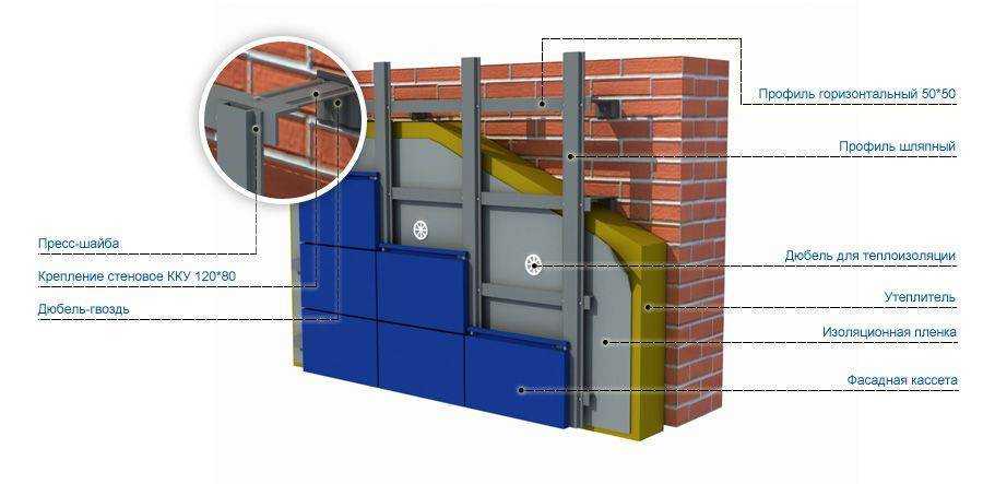 Подробная схема монтажа фасадных кассет