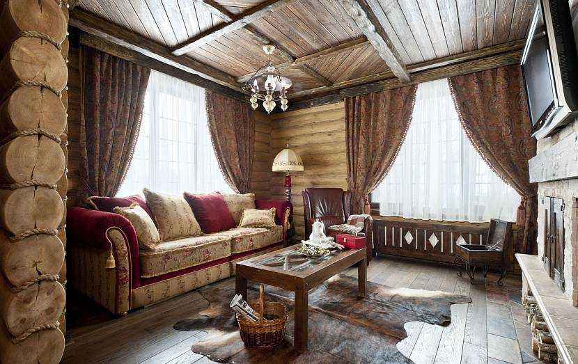 Есть стили, реализация которых невозможна без применения дерева. Если для оформления жилого пространства выбирается прованс, древесина обязательно должна присутствовать в отделке пола, стен и даже потолка. Чем меньше она подвергается обработке, тем лучше. Нарочито грубая фактура идеальна для кантри.