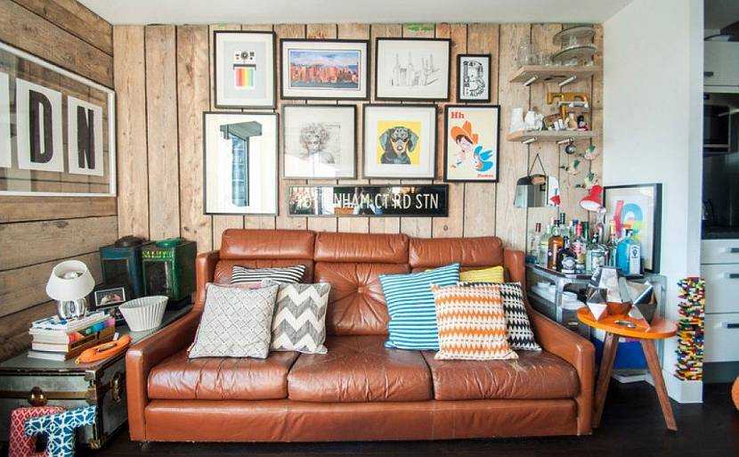 Деревянная обшивка стен как фон для эклектичного интерьераИсточник houzz.com