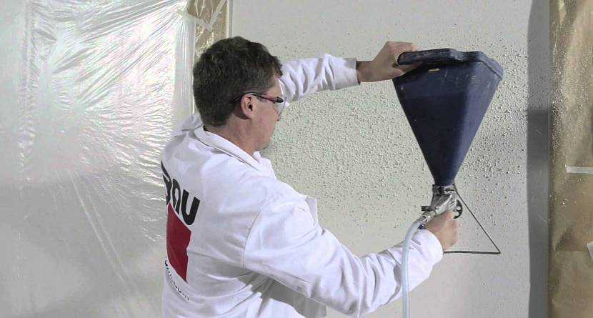 Следует заметить, что эффект от ручного нанесения не так впечатлителен, как тот, что получен с помощью компрессора. Штукатурка, выбрызгиваемая под высоким давлением, хорошо прилипает к стене, образуя эффект попкорна. Размер капель, их густота и цвет могут быть различными и подбираются в соответствии с запланированным стилем или вашими предпочтениями.