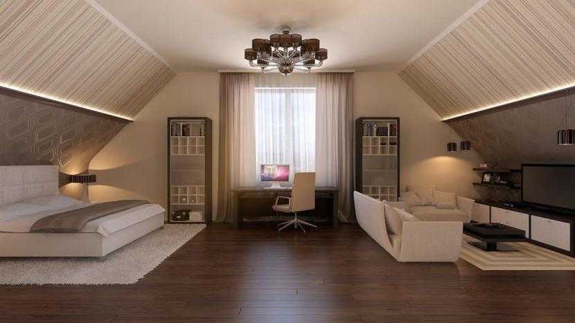 Уютная спальня под крышей домаИсточник kaksdelat.guru