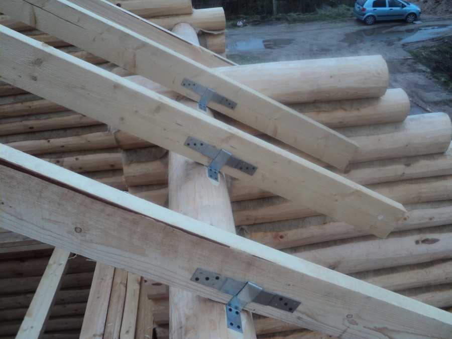 - стропила — брус 50х150, 100х150 мм, стесанные на один кант бревна, доски, уложенные на ребро;