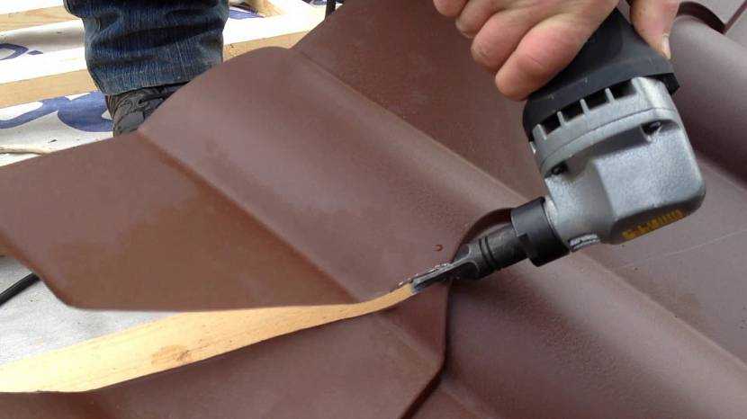 Стандартный строительный инструмент – болгарка – для нарезки металлочерепицы использовать нельзя. В процессе работы с болгаркой всегда происходит деформация полимерного покрытия в месте разреза. Кроме того, разогретые опилки являются причиной прогорания верхнего слоя материала, в результате чего он становится непригоден для дальнейшего использования.
