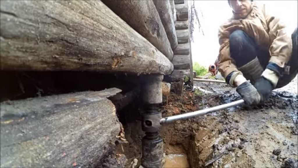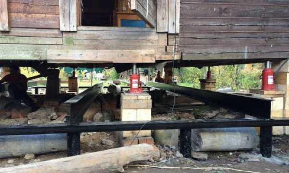 широкую поверхность. Специалисты советуют предварительно подкладывать доски; - изначально проверяется состояние бревен нижнего