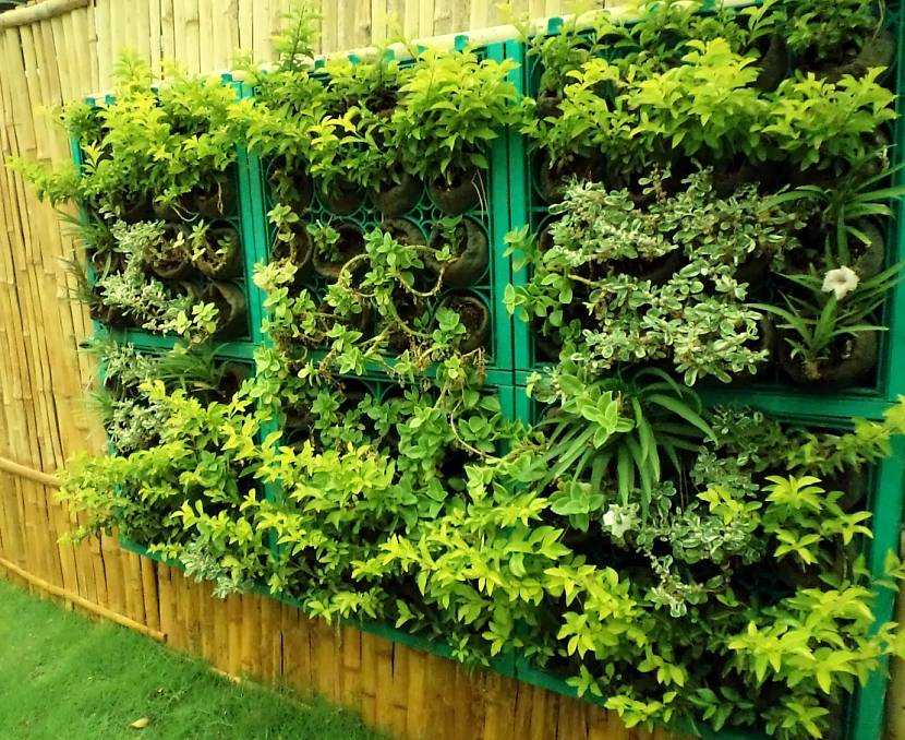 Вертикальные грядки на забореИсточник sazhaemsad.ru