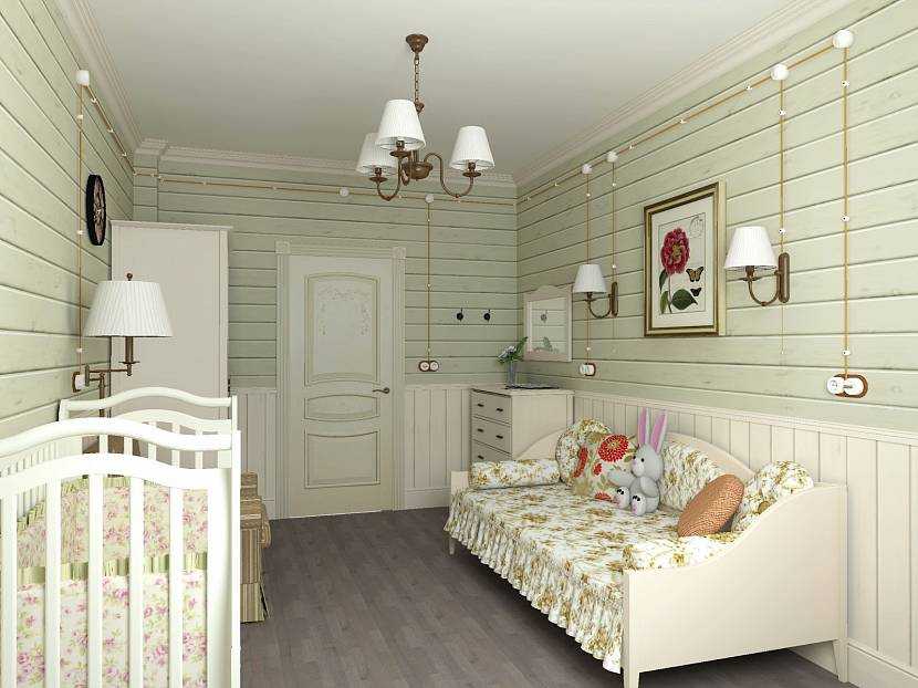 Детская-спальня отделаны окрашенной вагонкой, открытой электропроводкойИсточник comfortoria.ru