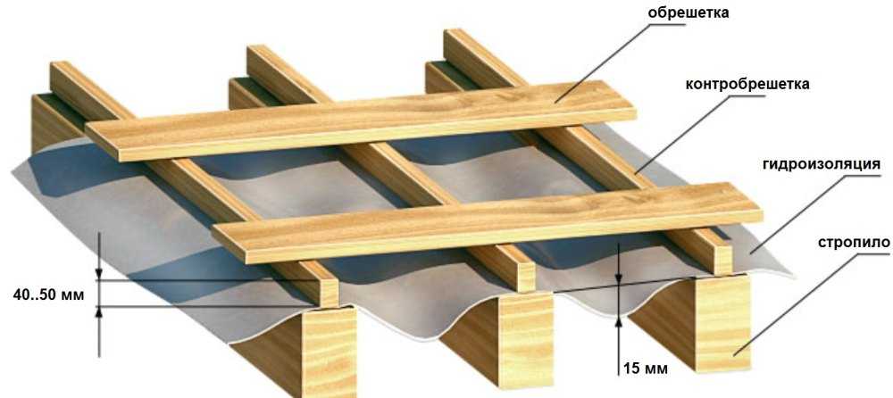 - обрешетка делается из досок толщиной 20—25 мм и шириной 10—15 см.