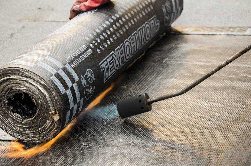 - Наплавляемая кровля. Это тоже рулонный материал, только его перед укладкой нагревают открытым огнем из газовой горелки. Битум, нанесенный на обратную сторону материала, расплавляется и становится полужидким. Он же и выполняет функции клеящего состава.