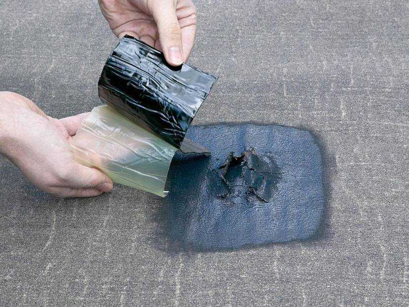 Ремонтируют эти кровельные материалы по-другому, чем мембраны из поливинилхлорида. К примеру, если это незначительные дефекты: маленькие трещинки или отверстия, то их просто покрывают битумной мастикой, наносят последнюю при помощи шпателя.