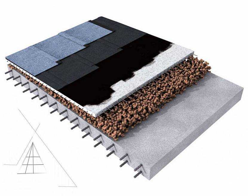 Схема расположения слоев на плоской крыше при ее утеплении керамзитомИсточник stroy-legion.ru