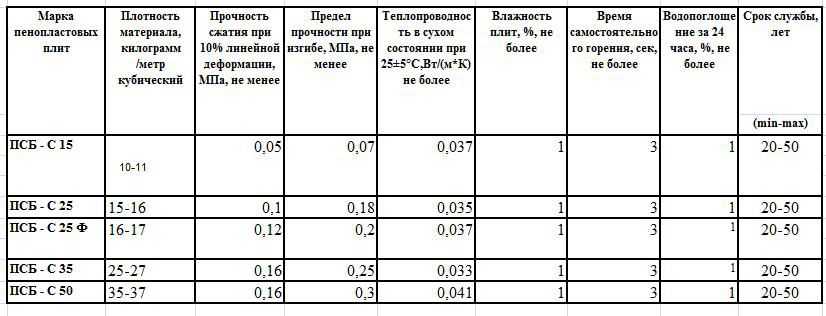 Физические характеристики пенополистирола