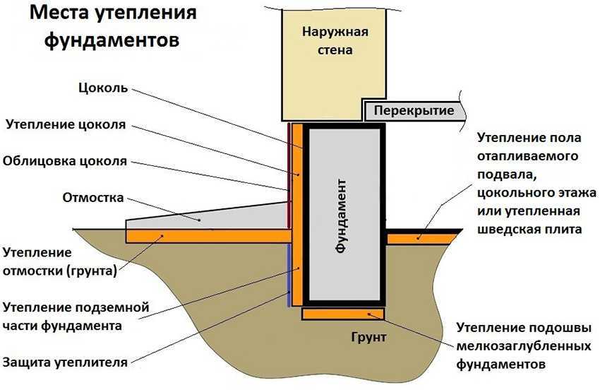 Для разных фундаментов целесообразно применять разные виды утепления