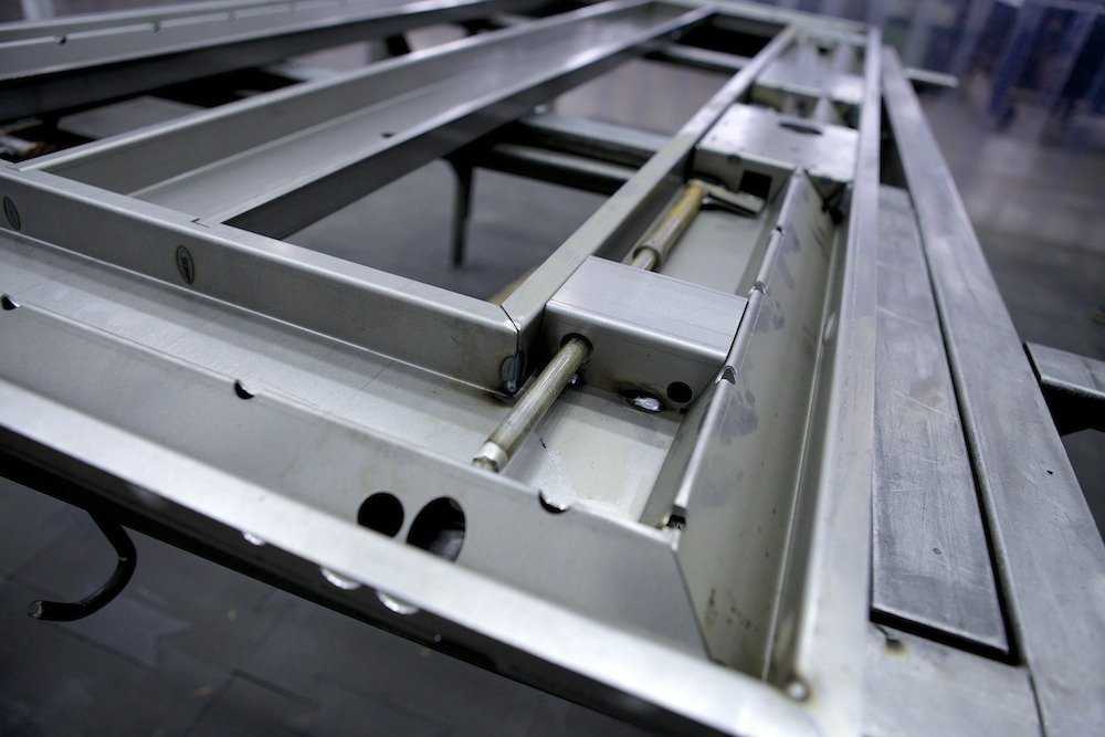 Рама обшивается стальными листами. Все это делает конструкцию крепкой, но одновременно и очень массивной. Это требует применения качественной фурнитуры. Ведь чем больший вес будет у полотна, тем быстрее согнутся петли и конструкция примет ассиметричное положение.