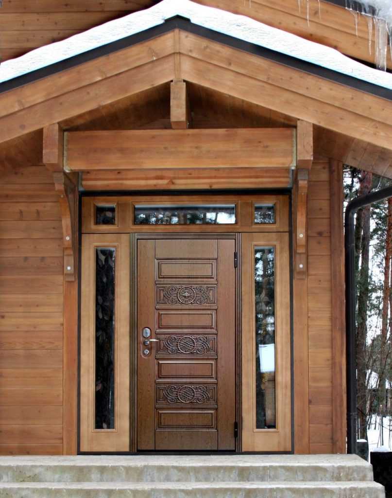 Такого никогда не произойдет с деревянной дверью, тем более, когда она сделана по технологии «сэндвича». Дополнительная изоляция, которую имеет внутри входная уличная преграда, не позволит полотну промерзнуть. Утепленная дверь сохранит тепло в помещении даже при самых лютых морозах.