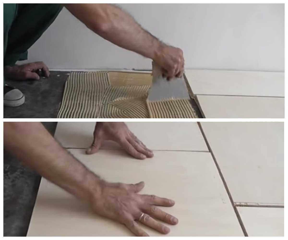При приклеивании плитки к черновому полу на ПВА соблюдают следующий порядок действий: