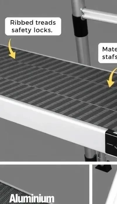 При выборе обращайте внимание на толщину алюминиевого профиля и наличие рифленых ступеней для предотвращения скольжения. Убедитесь, что стремянка имеет надежные фиксаторы для обеспечения устойчивости.