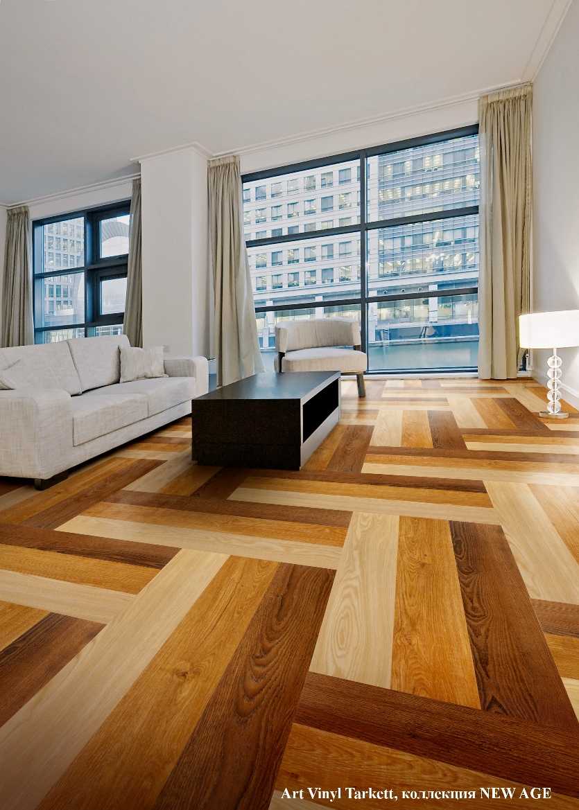 - Виниловые полы таркетт наиболее популярны в России. Они производят специальную коллекцию Art Vinyl, которая с абсолютной точностью передает рисунок и текстуру натурального дерева. Но цена данного винилового пола равна цене ламината 33 класса и составляет 550-750 руб/м2.